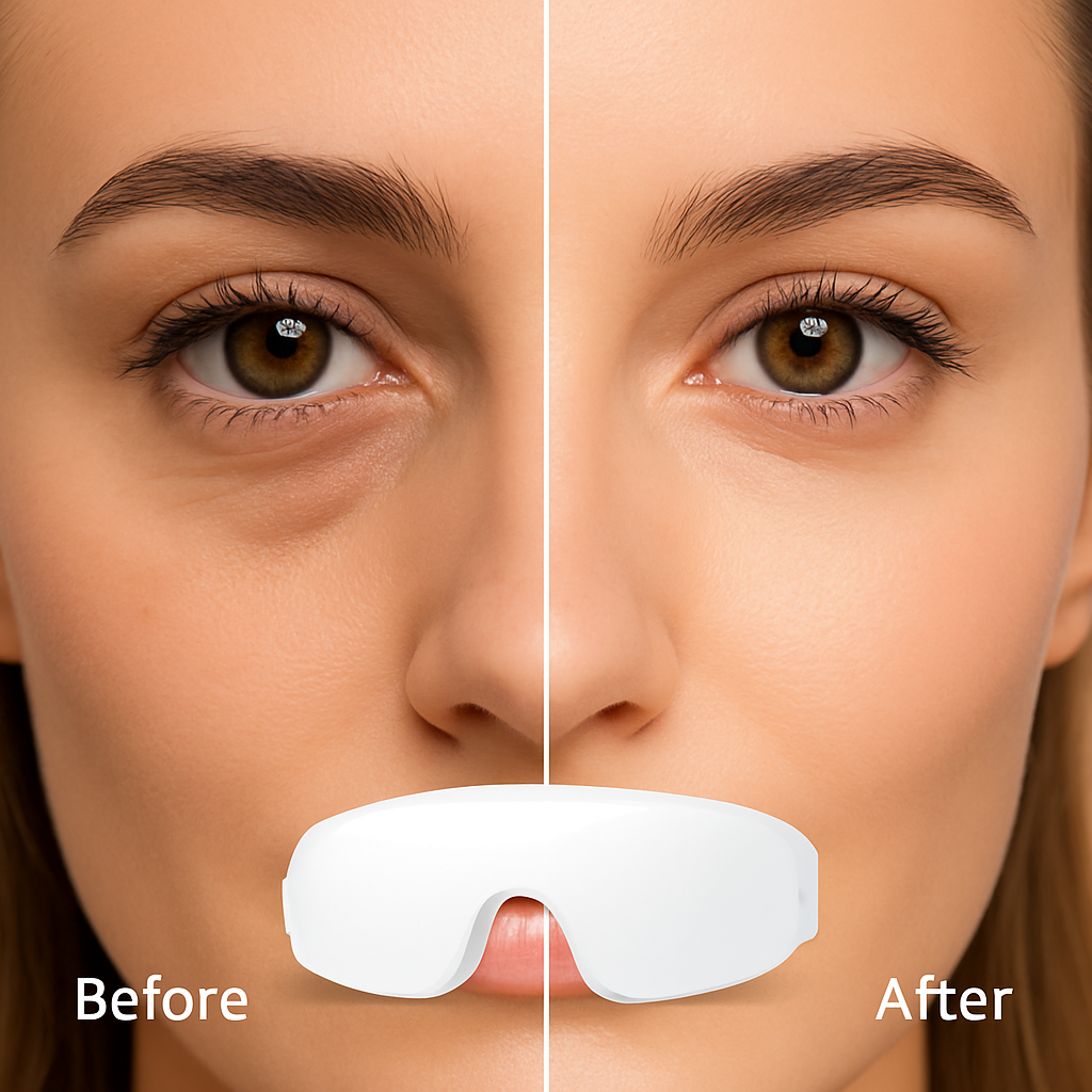 Our LED Eye Massager uses advanced red light therapy to stimulate collagen production and reduce dark circles. It's designed to relax eye muscles and promote a soothing experience, helping you look revitalized and awake.